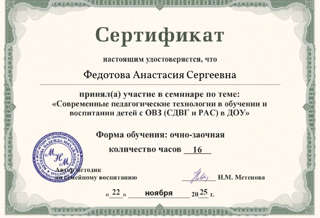 Семинар "Современные педагогические технологии в обучении и воспитании детей с ОВЗ (СДВГ, РАС) в ДОУ"