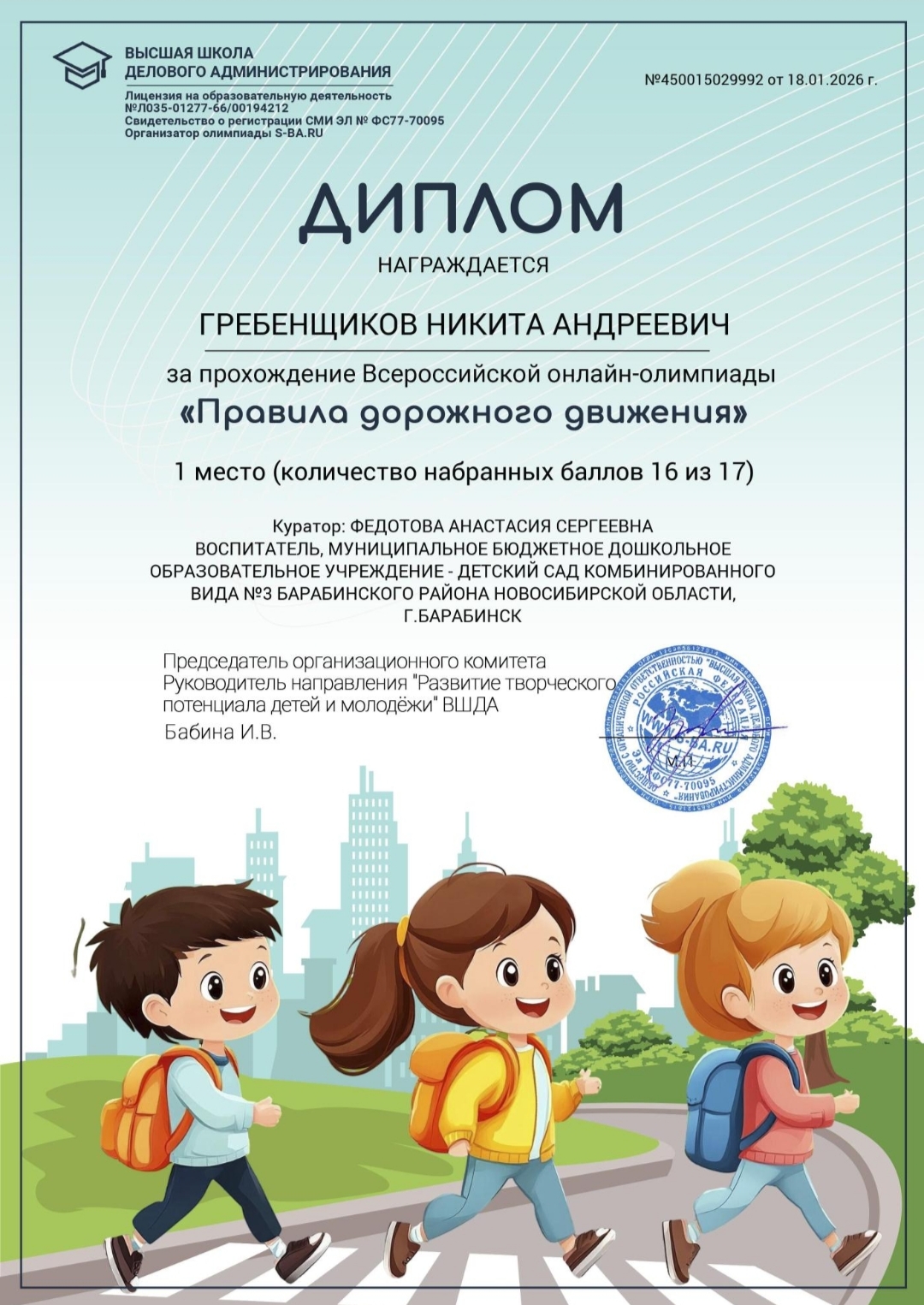 Диплом 3 степени