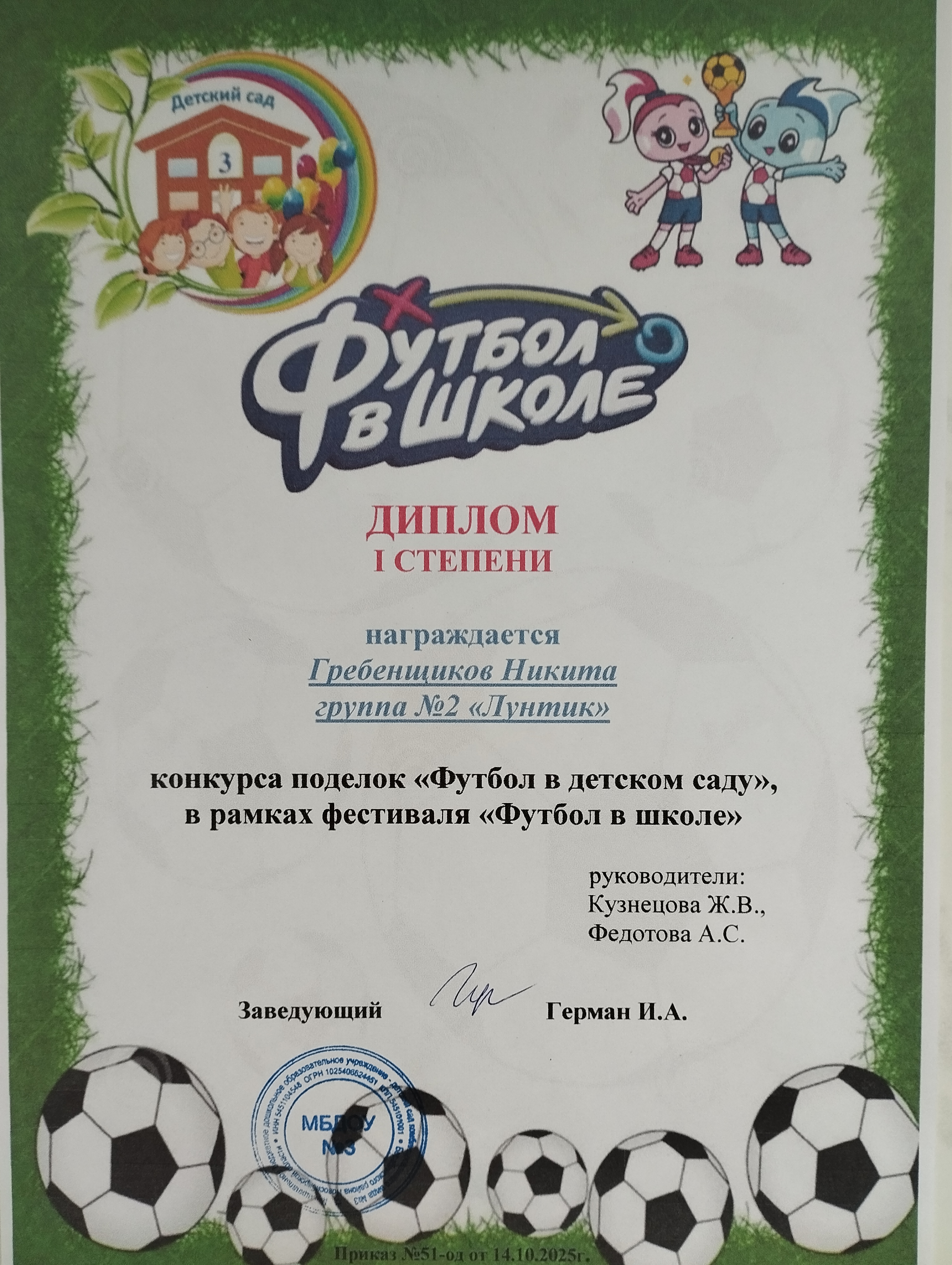 Конкурс поделок "Футбол в детском саду", в рамках фестиваля "Футбол в школе"